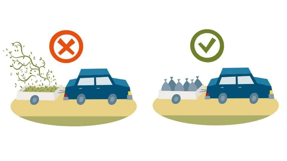 När du ska transportera ditt trädgårdsavfall med invasiva växtarter som du lagt i plastpåsar eller plastsäckar och noga förslutit, transporterar du dem till återvinningscentralen.