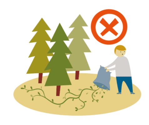 Kasta aldrig trädgårdsavfall i naturen. Det är förbjudet! Det betraktas som nedskräpning (15 kap. 26 § miljöbalken). Även om det du slänger är växtavfall som tidigare inte visat tecken på att sprida sig kan de börja göra det. Oavsett om växtavfallet innehåller invasiva främmande arter eller inte så är det inte tillåtet att kasta det i till exempel skogen.