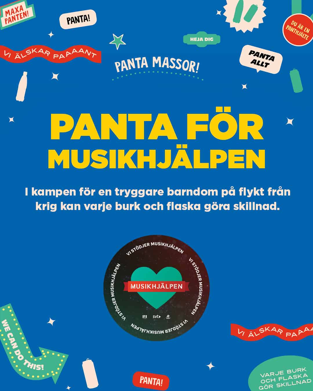 Nu kan du välja att skänka dina pantpengar till Musikhjälpen när du pantar hos oss på ÅVC Voltgatan.